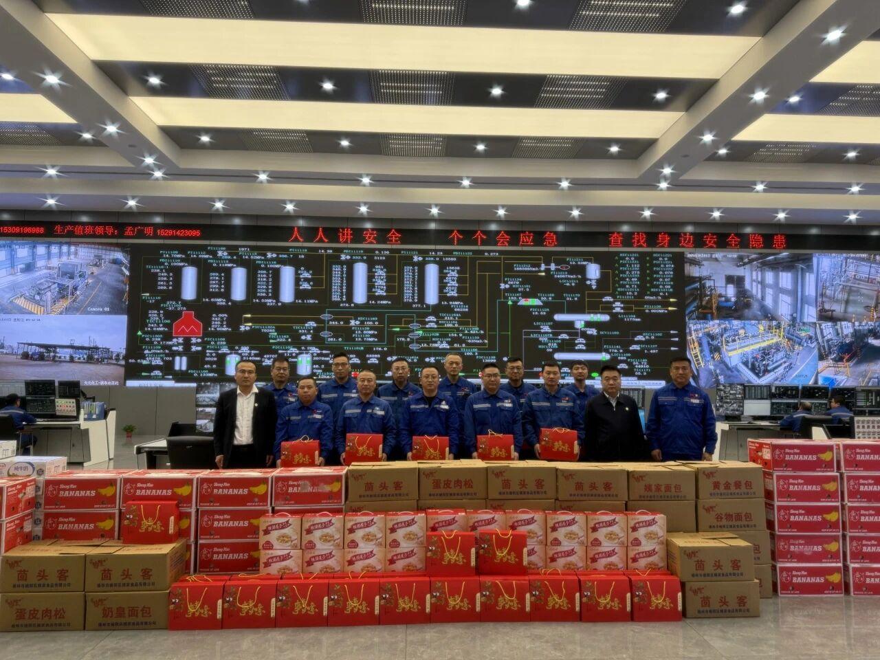 10月6日,天元公司董事、總經(jīng)理喬柏,黨委委員、副總經(jīng)理趙耀飛檢查節(jié)日期間安全生產(chǎn)工作并慰問節(jié)日期間堅守崗位的干部職工,為他們送去慰問品。喬柏一行先后前往各生產(chǎn)裝置區(qū)、中心控制室以及職工餐廳,查看節(jié)日期